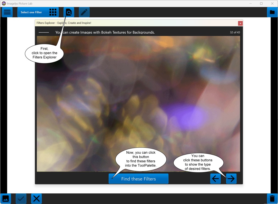 Now, in the ToolPalette, click of the filter icons of Bokeh-046.